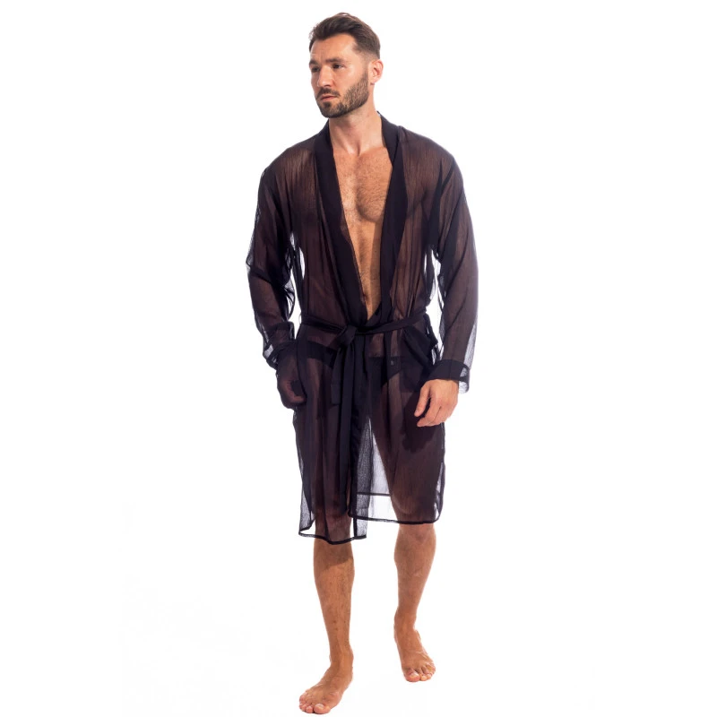 Chantilly Kimono robe de chambre pour homme en mousseline légère, vous surprendra par sa matière douce et fluide. Laissez le kimono Chantilly effleurer votre peau et vous envelopper dans un nuage de douceur. Grâce à son jeu de transparence, personne ne pourra vous résister.