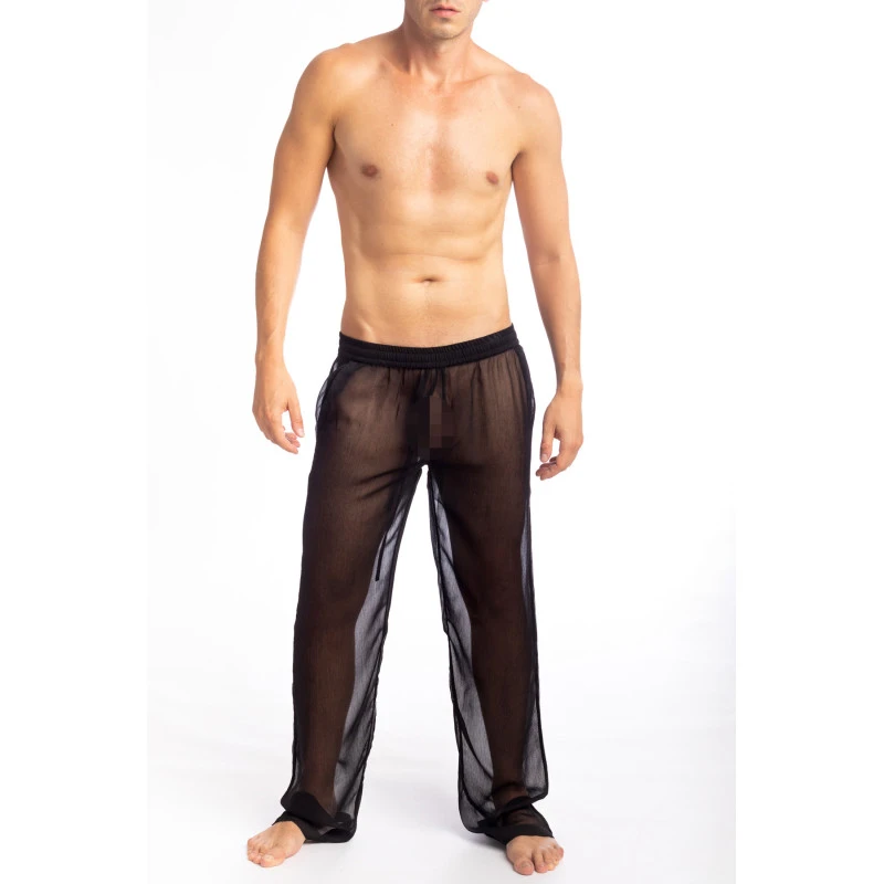 Pantalon lounge en mousseline transparente pour les hommes afin d’exprimer leur sensualitĂ© avec Ă©lĂ©gance et classe. Le pantalon fluide et transparent laisse entrevoir ce qui se trouve en dessous, renforçant ainsi le dĂ©sir de votre partenaire d’en vouloir plus.