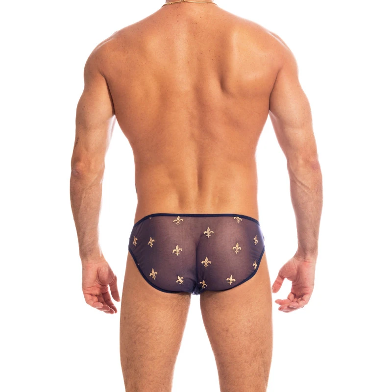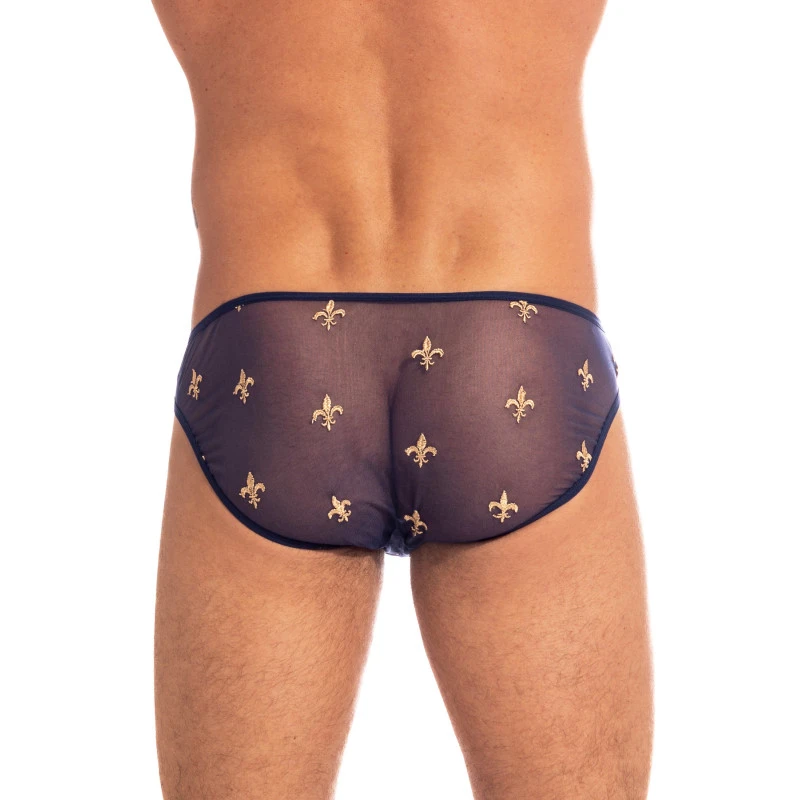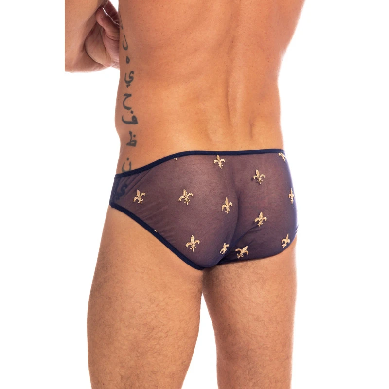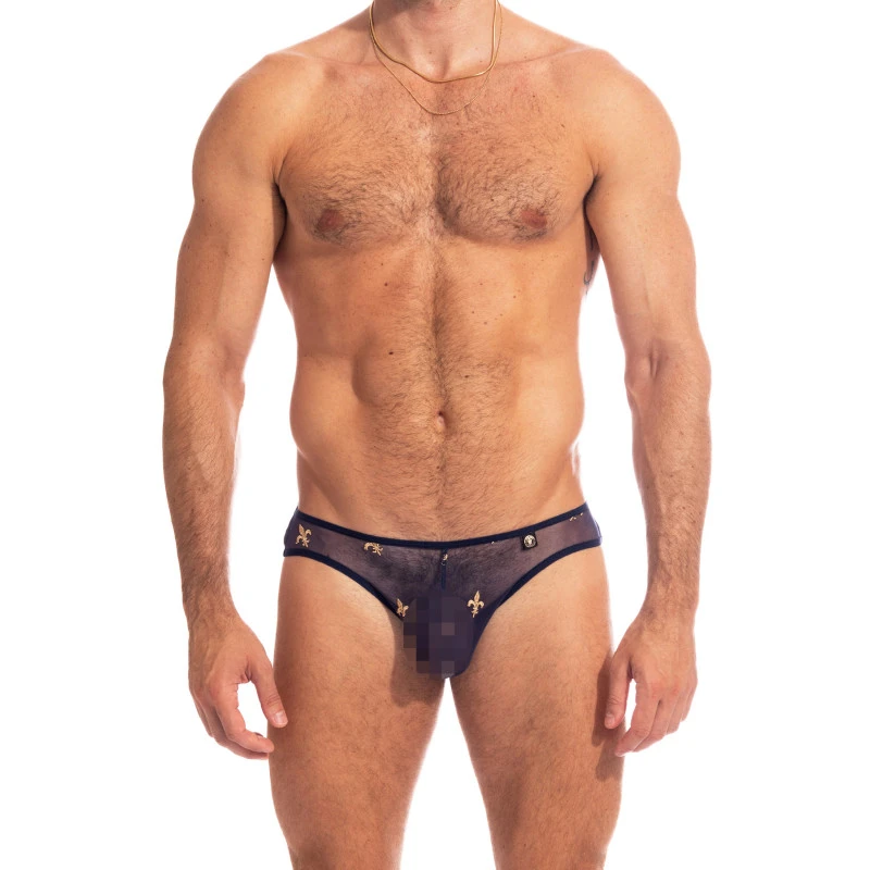 Un rendu unique de ses broderies satinées de fleurs de lys, le dessin révèle toute sa splendeur au contact de votre peau. Slip homme brodé transparent de luxe pour les amateurs de belles choses. le slip est entièrement non-doublé pour offrir une légèreté au porter et un confort sans contraintes.