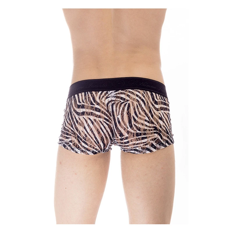 Douceur et exotisme sont au rendez-vous avec le V boxer Cory de L’Homme Invisible. Plus qu’un simple sous-vêtement homme, c’est une pièce d’exception aux allures de safari haute couture qui s’offre à vous. L’imprimé zèbre réalisé en France sur une dentelle soyeuse vous fera rêver et voyager tout en mettant en avant votre silhouette athlétique.