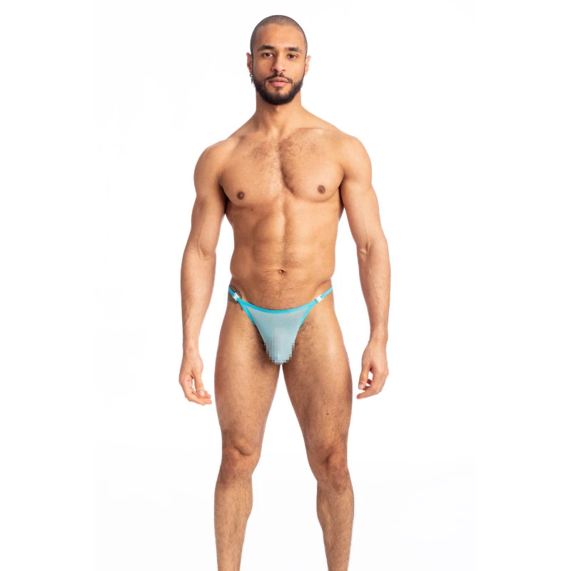 Le String Striptease Cristallo pour Hommes est un sous-vêtement si léger grace à sa matière en tulle de couleur bleu ciel.