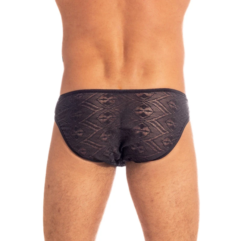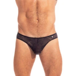 Slip homme Désires Nocturnes en jacquard transparent est entièrement non-doublé et ceinture fine en finition biais pour offrir une légèreté au porter.