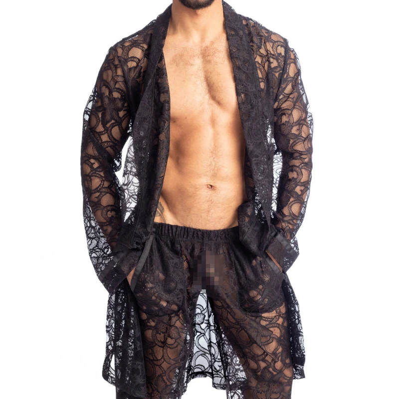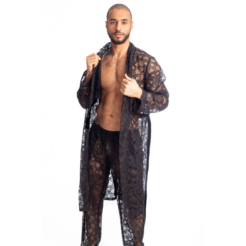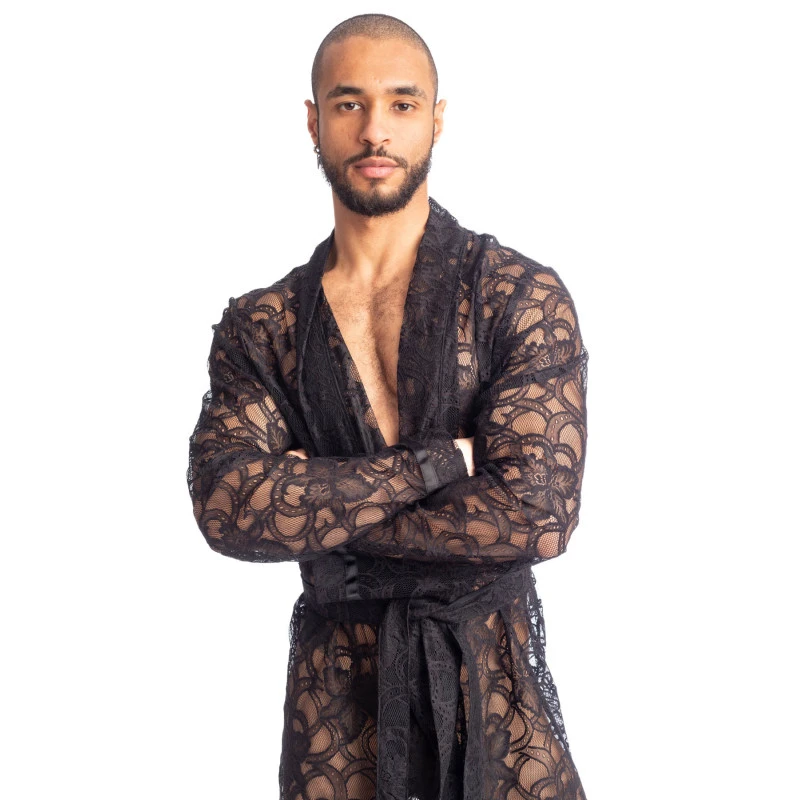 Ce kimono pour homme en dentelle, au travail minutieux, est empreint d’un raffinement et d’une élégance dont seul L’Homme Invisible à le secret.