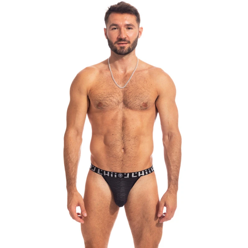 Jock Strap sportif poche ergonomique profonde, confortable, en tissu français dans une ligne Ă©lĂ©gante Ă©purĂ©e.  La sobriĂ©tĂ© de la couleur est dynamisĂ©e par les Ă©lastiques, assortis Ă la ceinture au logo stylisĂ© graphique. Initialement prĂ©vu pour les sportifs, le modèle est souvent portĂ© dans le cadre d’une utilisation sexy charme.