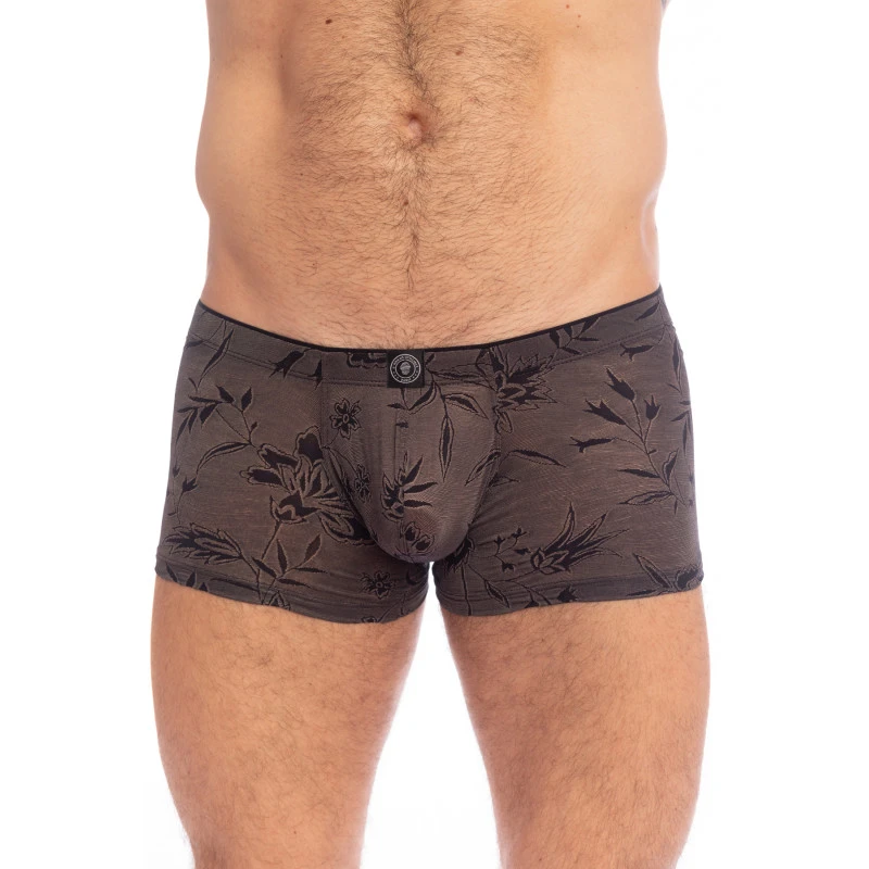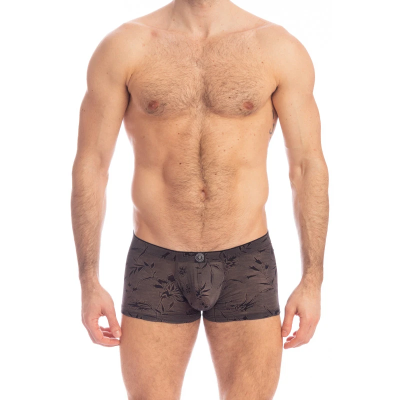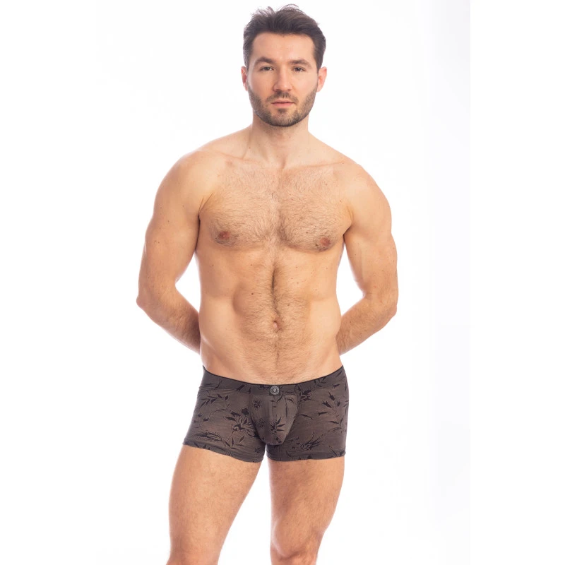 Le Shorty Push Up La Fleur Noire est un boxer homme chic avec un jacquard de microfibre douce avec un motifs floral monochrome sur un fond coloris chair. Son dessin romantique semble juste être posé avec délicatesse sur votre peau.
