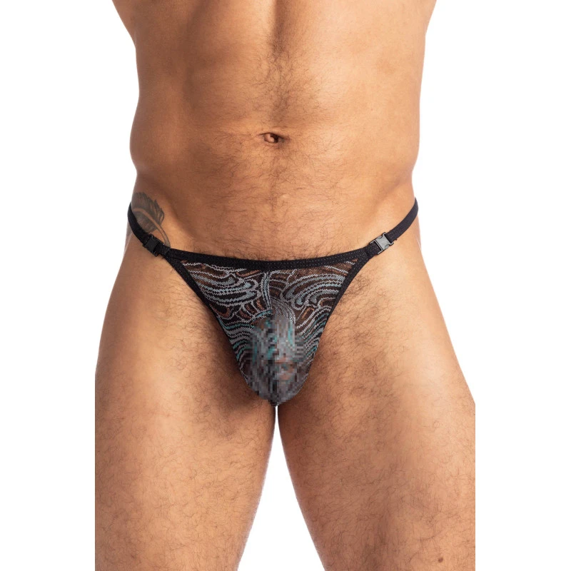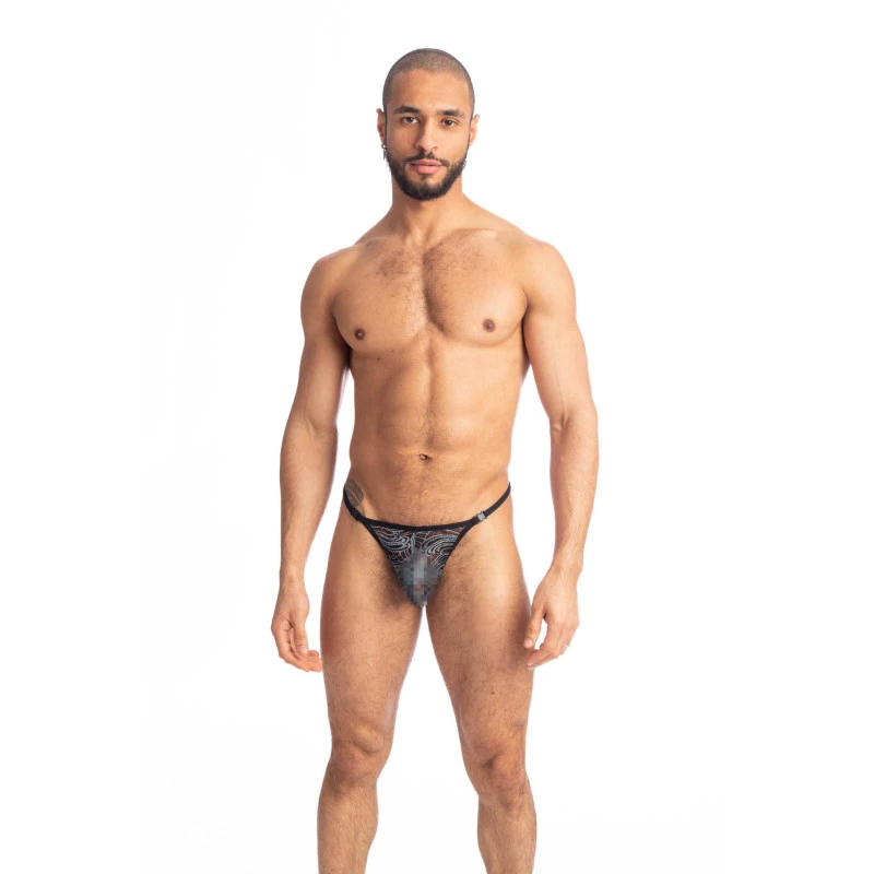 Ce string strip-tease pour homme est une pièce divinement sexy et sensuelle. Sa matière est d’une grande noblesse : une dentelle légèrement transparente et sertie de motifs organiques et végétaux aux accents poétiques.