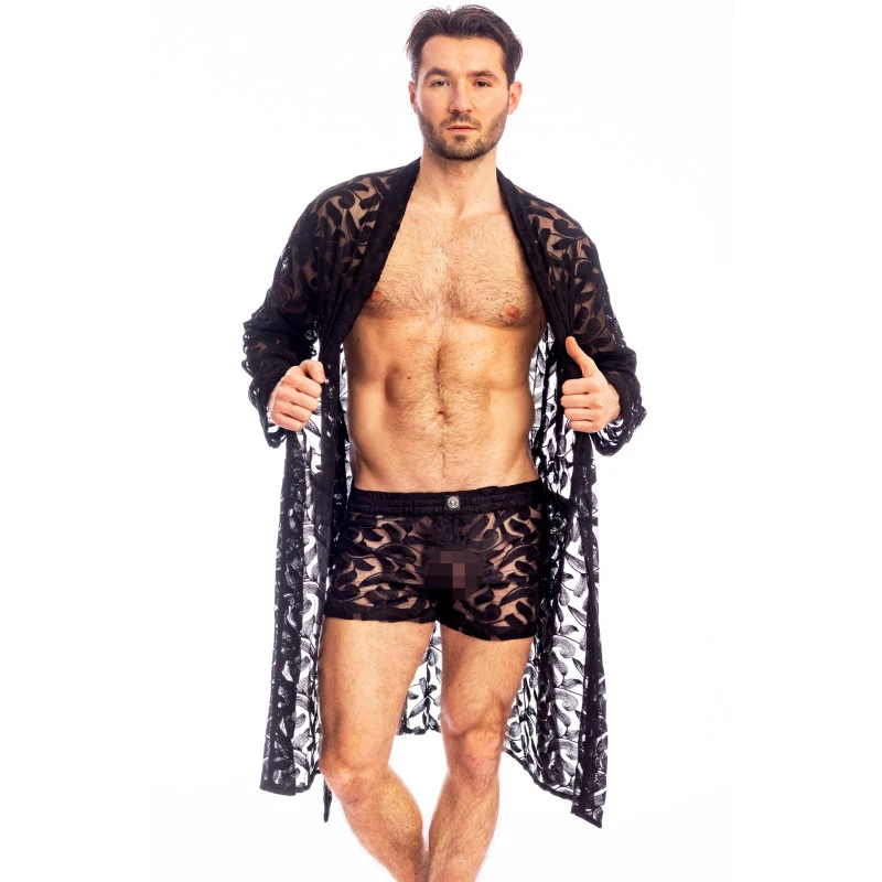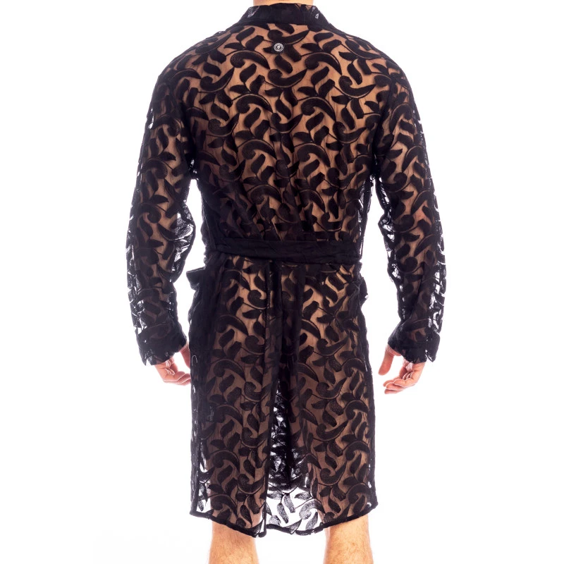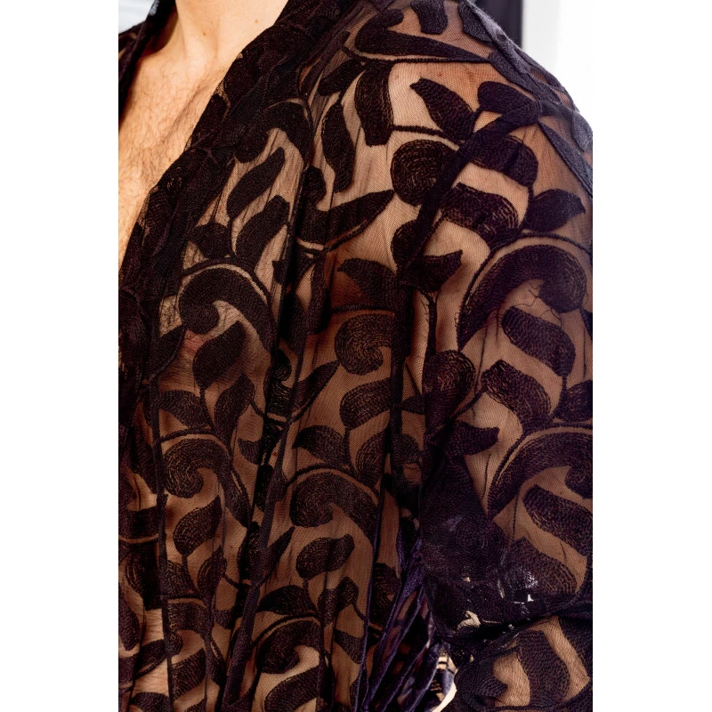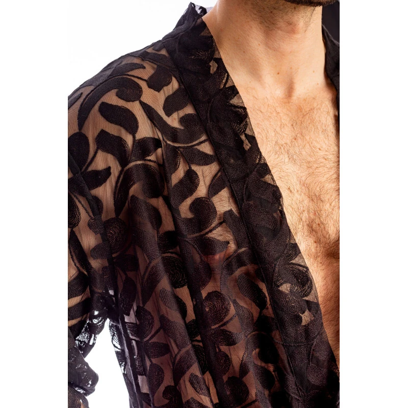 Laissant flotter sa belle matière transparente richement brodée au gré de vos mouvements, le kimono Homme Gomorrah de L’Homme Invisible effleurera votre peau et lui offrira une caresse qui embrasera votre sensualité.