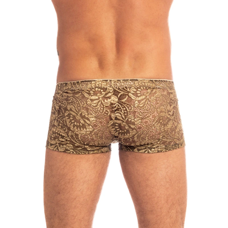 Avec sa coupe unique, le shorty push-up de L’Homme invisible épousera votre corps pour un effet seconde. Sa dentelle luxe aux reflets dorés, une intégration de fils lurex sur la surface lui confère un éclat d’or et son fond en olive lui donne une allure vintage.