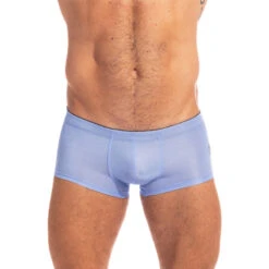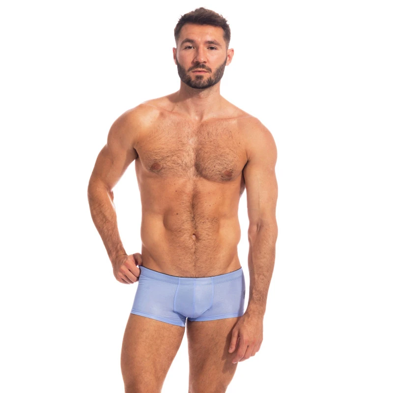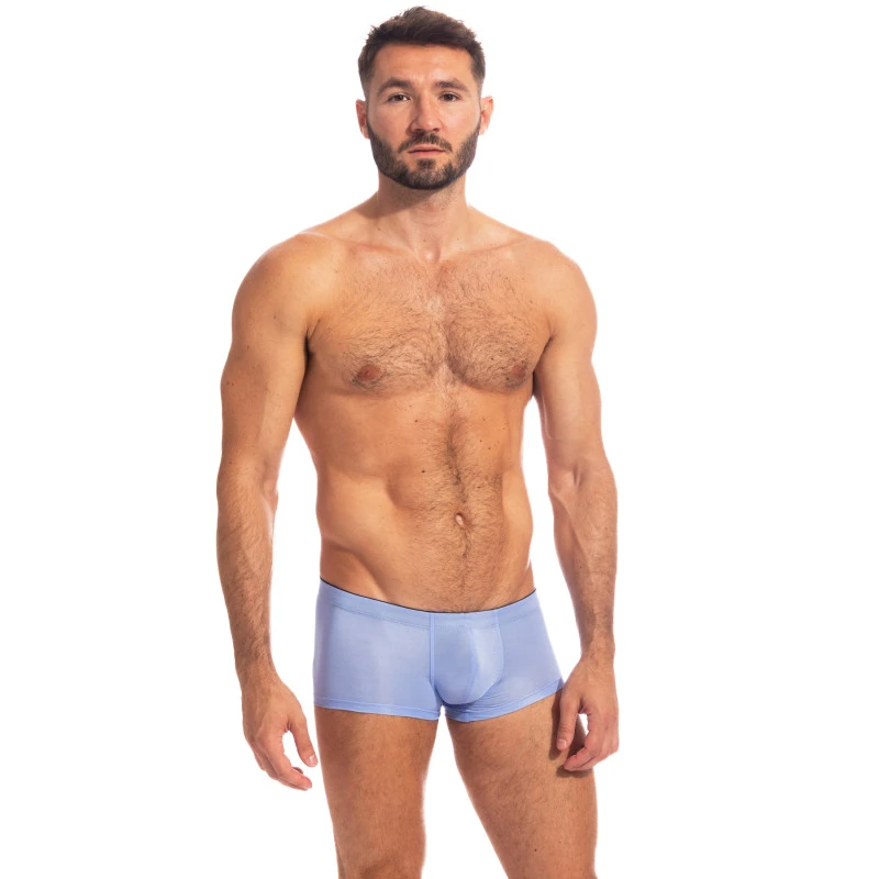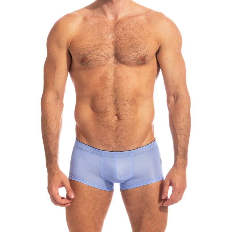 Le mini boxer Jacaranda de l’Homme Invisible est dotĂ© d’une couleur particulière, un magnifique bleu teintĂ© de violet.Â