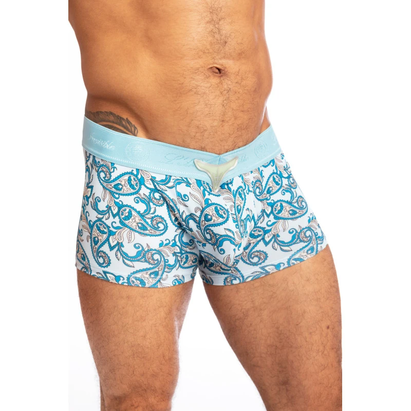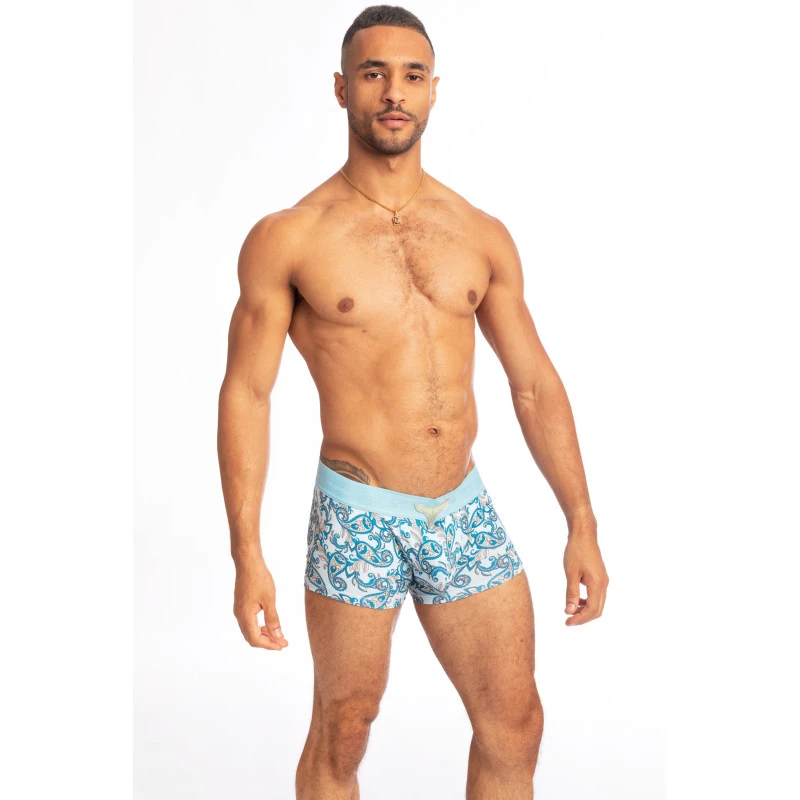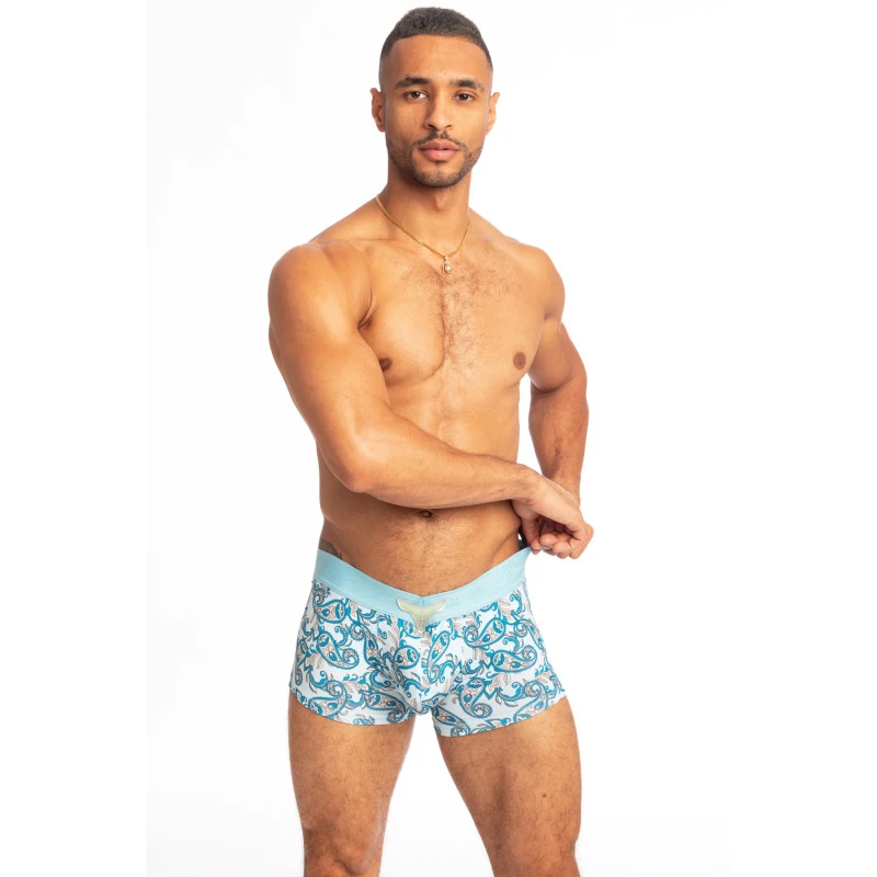 En microfibre brossée et imprimée en banlieue parisienne, le boxer en v La Côte Méditerranéenne vous surprendra par son confort abdominal et sa taille basse sexy.