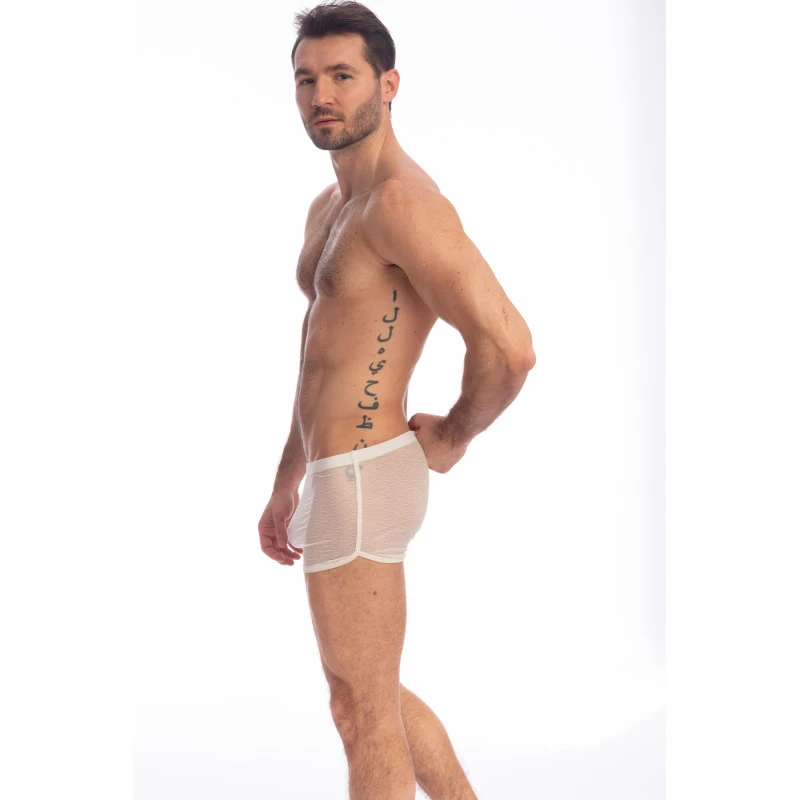 La Creme Short homme lounge ultra court et ultra-léger (et un peu transparent quand même) pour flâner à la maison ou pour dormir, il est tellement beau et sexy que toutes les occasions sont bonnes pour le porter et le montrer.