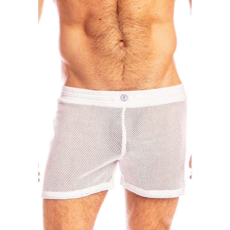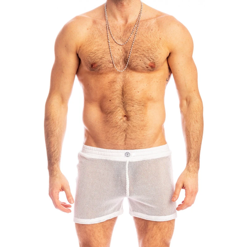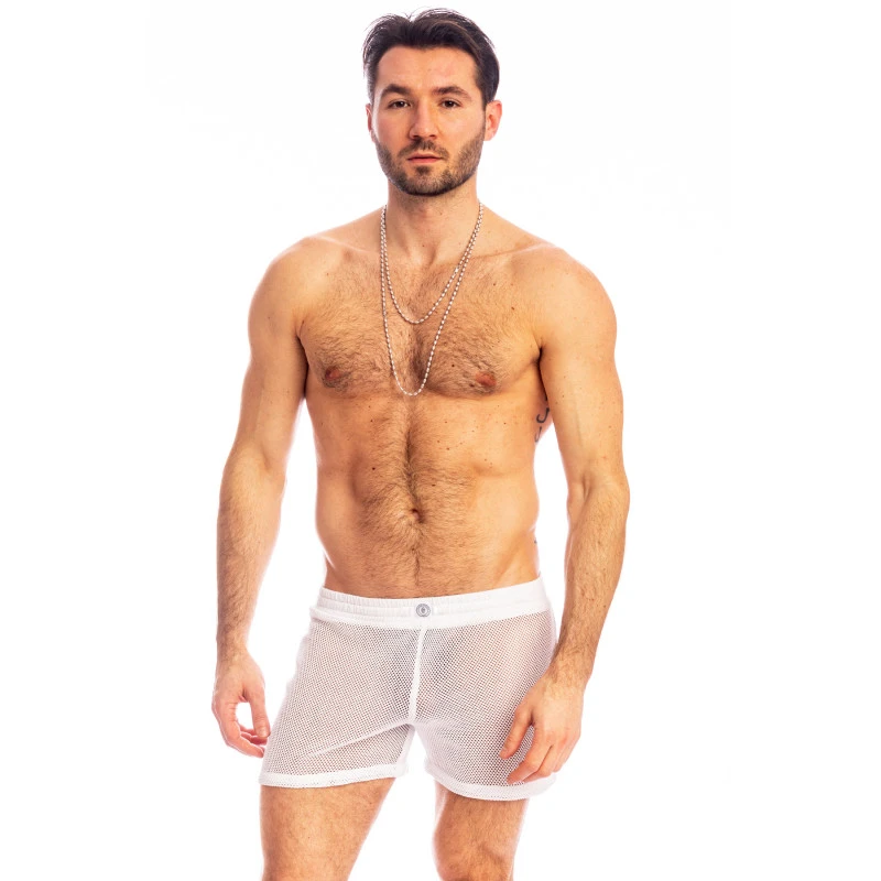 Short lounge pour homme en résille de coton de la collection Madrague, nouvelle création sexy en 100% coton. Vous allez adorer sentir l’aire effleurer votre corps travers sa matière style filet, associé le avec un jockstrap ou string ou encore sans rien pour profiter pleinement l’aspect ajouré et respirant de notre short Madrague.