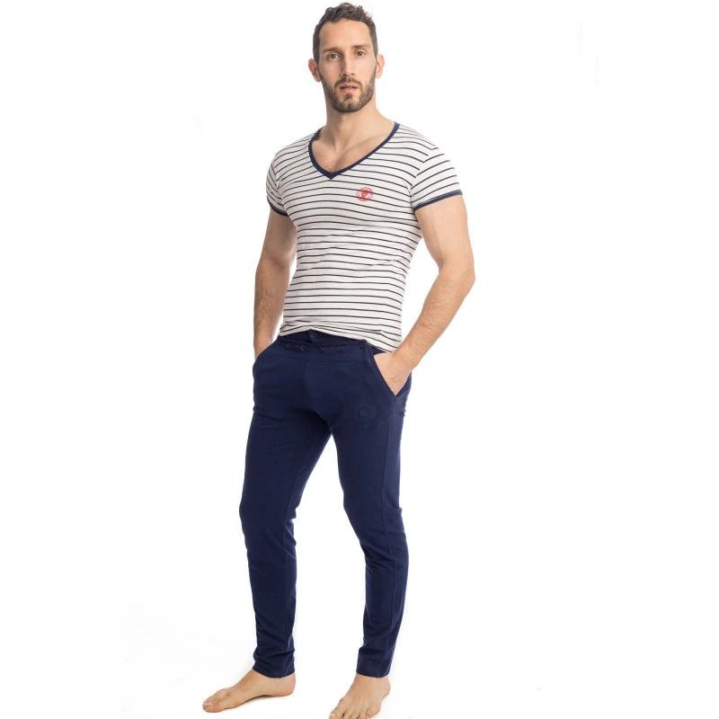 La collection Matelot s’inspire des pantalons de marins français. Nos pantalons lounge et shorts lounge munis d’une partie frontale facile à ouvrir vont vous transformer en d’irrésistibles marins sexys ! Créée dans un coton doux renforcé d’élasthanne, cette collection vous offrira toute la douceur et le confort nécessaires pour vos moments de détente, en tout lieu.