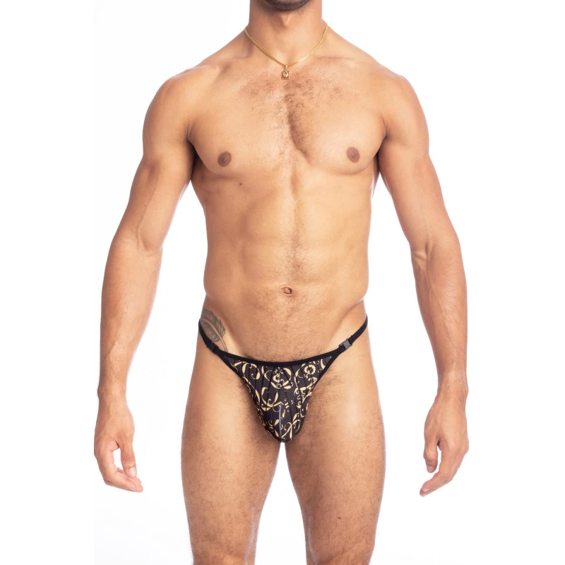 Le string Oro pour homme est d’une beauté singulière, résultant de la confluence de la géométrie de notre microfibre à rayures transparentes et d’un opulent motif baroque. Chez l’Homme Invisible, nous ne visons pas seulement le sexy, il faut que ce soit chic aussi, le pari est gagné ici, non ?