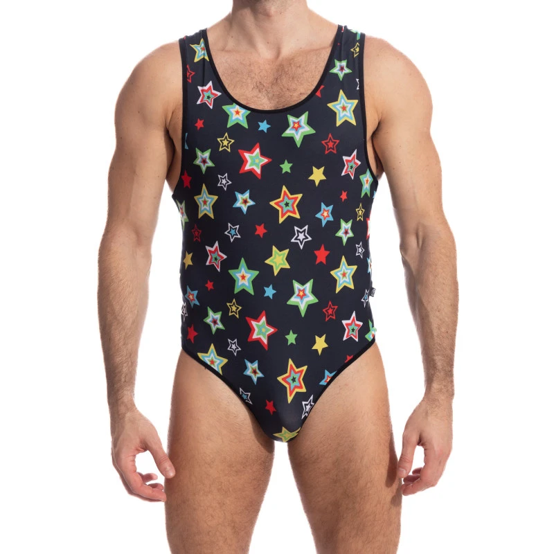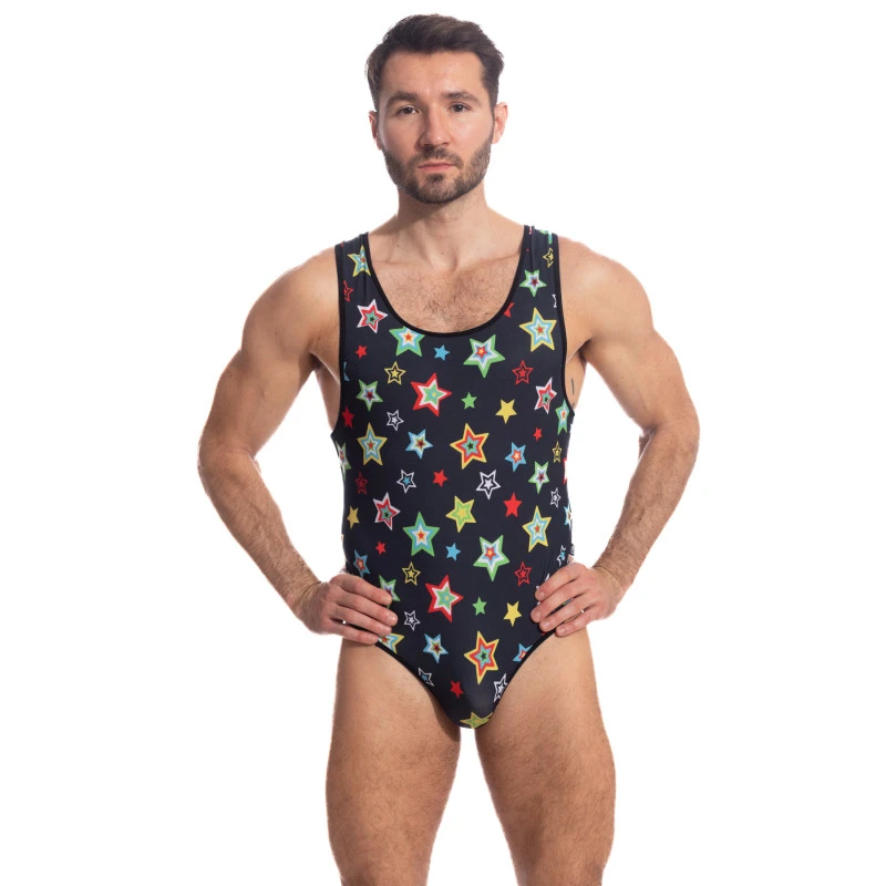 Le Body string homme Psychedelic Stars est une pièce hautement sensuelle et fun. Réalisé sans couture devant or derrière, et très moulant, ce body en microfibre imprimé vous procurera une impression de seconde peau.
