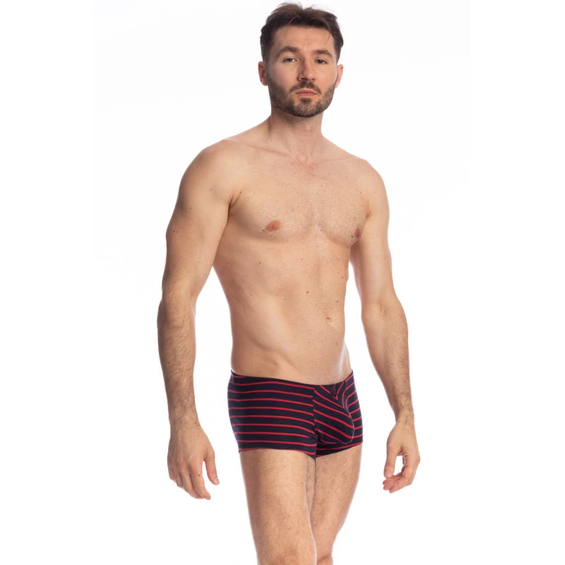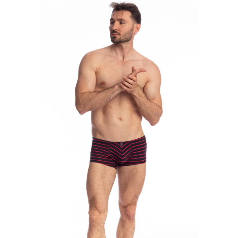 Ce mini boxer push up de L’Homme Invisible vous donnera une allure d’Appolon pleine de séduction. Sa poche frontale ergonomique effet push up associée à une coupe minimaliste permet un maintien confortable et impressionnant avec beaucoup de style, sans oublier le style « marinière » bleu et rouge très sexy.