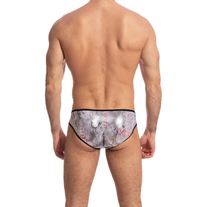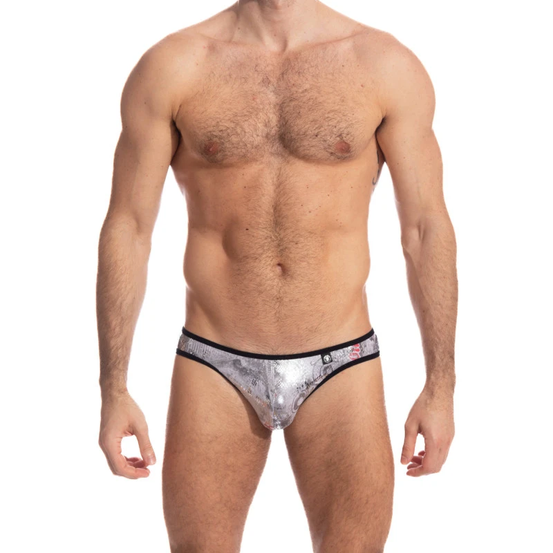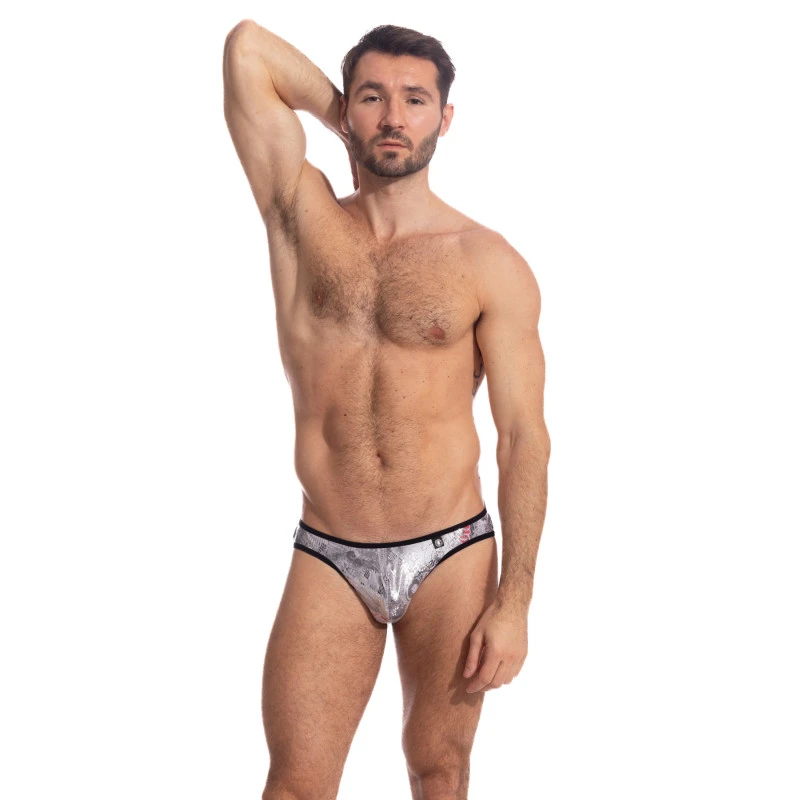 Mini Slip homme taille basse, en coupe bikini et ceinture fine en finition biais en microfibre pailletée style peau de python, le slip est entièrement non-doublé pour offrir une légèreté au porter et un confort sans contraintes.