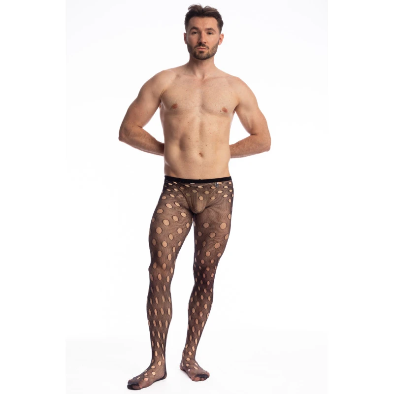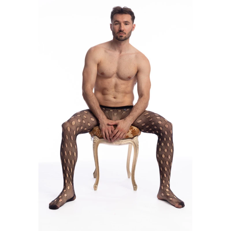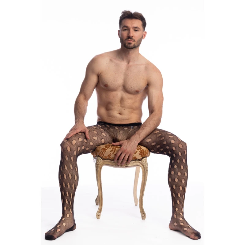 Soleta Collant pour Homme de L’Homme Invisible avec un motifs graphique et contemporain avec des grand trous donnant une illusion des Polka dots au contact de la peau comme une ouvre vivant de l’artiste japonaise Yayoi Kusama.
